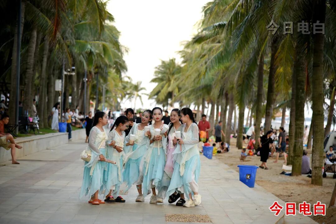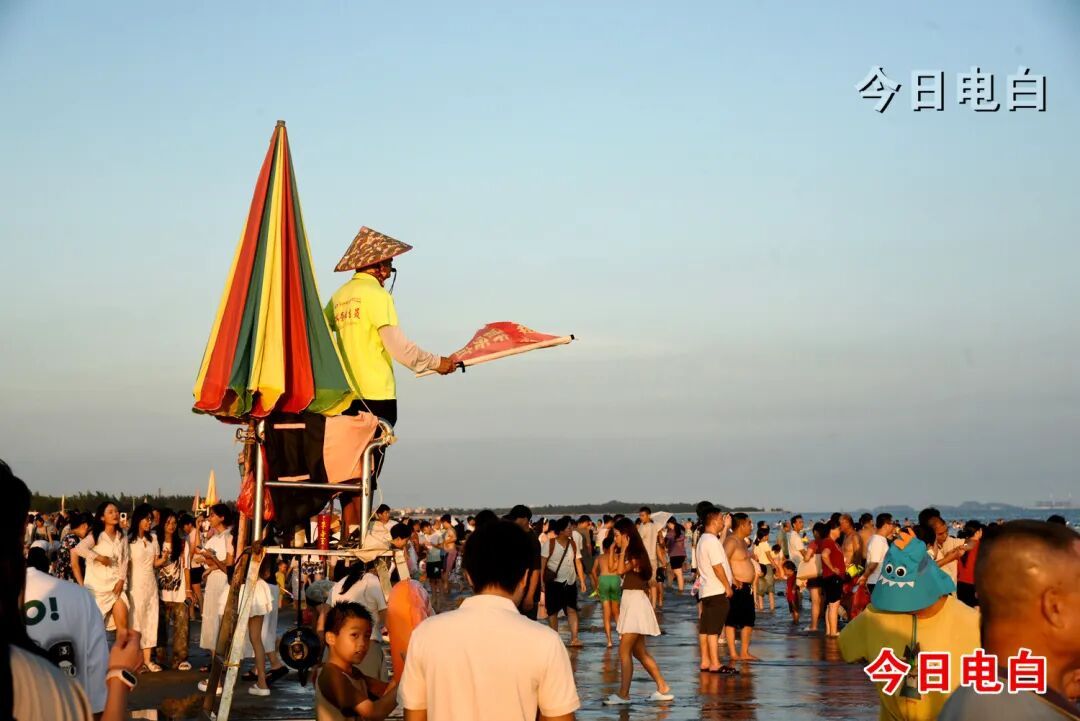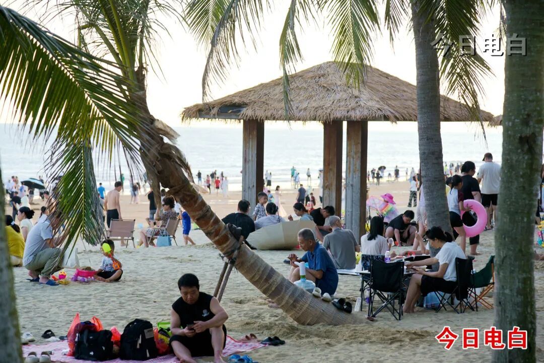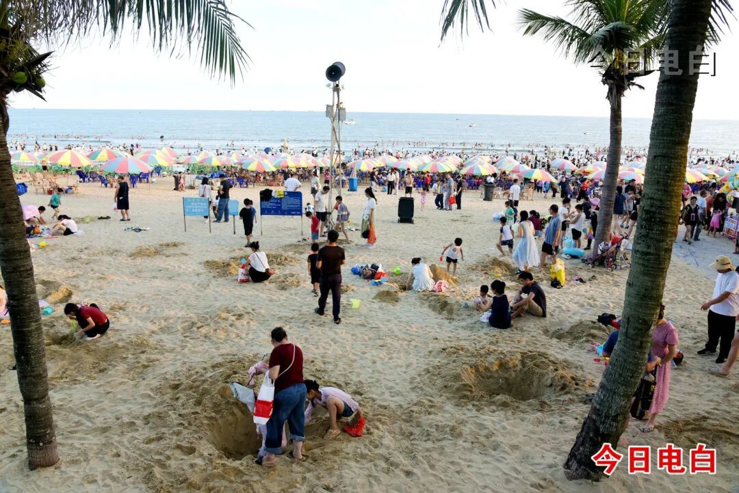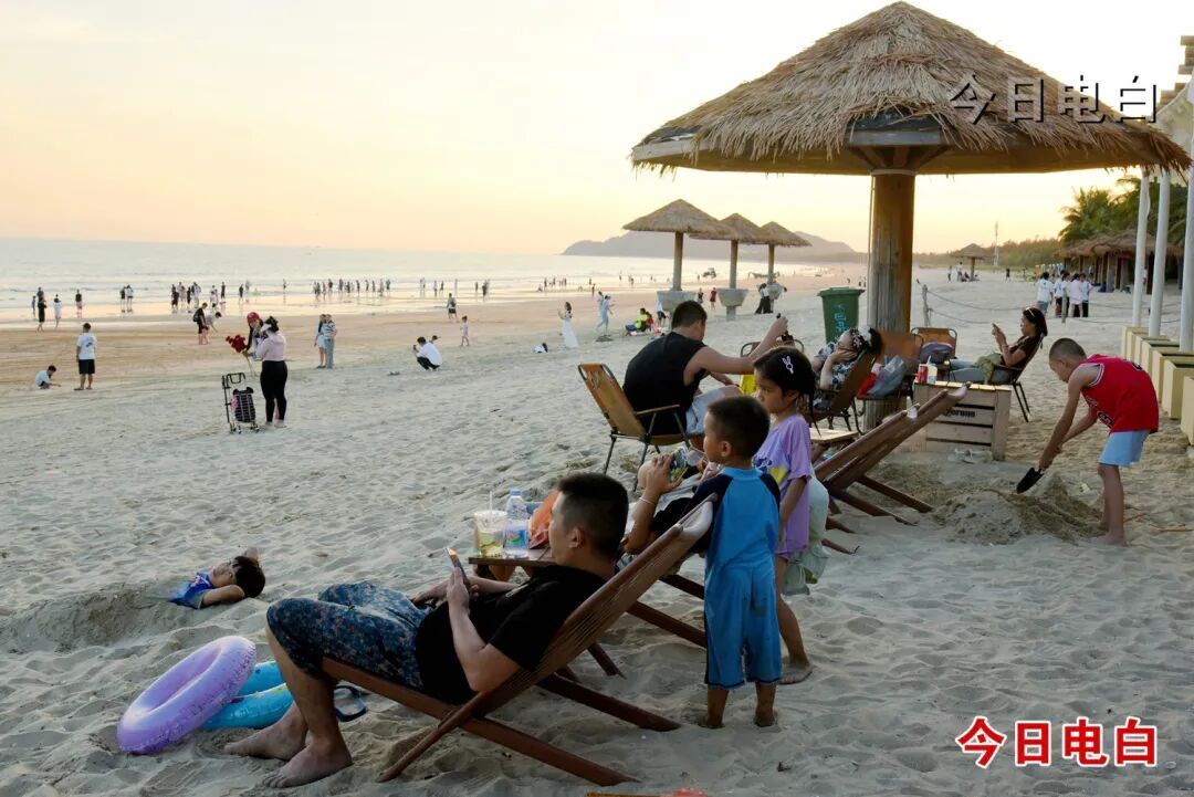 景区相关负责人介绍,截至下午6时,入园游客量已突破日常周末的两倍。为保障游览体验,景区增派了安保与服务人员,同时加派保洁人员定时清理沙滩垃圾,确保每一位游客都能安心享受沙滩乐趣。