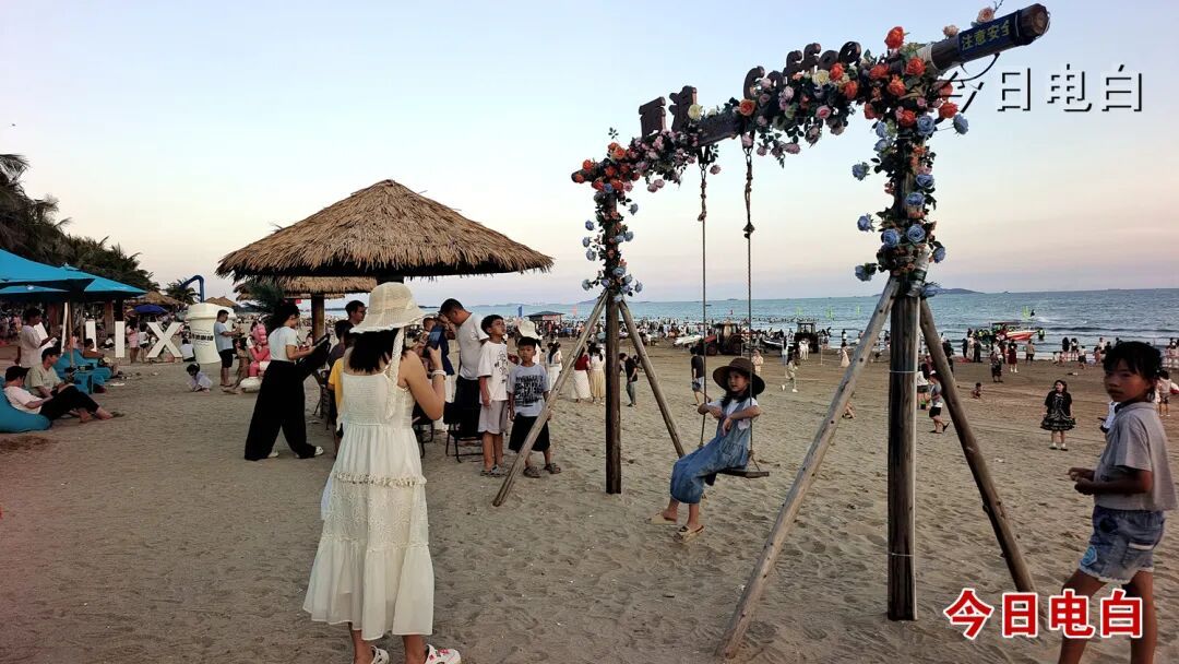 “早就想来中国第一滩了,今天终于如愿,孩子在沙滩上玩得不肯走,这里的大海和沙滩真的太治愈了!”来自佛山的游客王先生一边帮女儿拍沙滩照,一边笑着说。景区内潮玩游戏嘉年华吸引了大量家庭参与,充气城堡、网红秋千、亲子互动游戏区等区域人气尤为火爆。